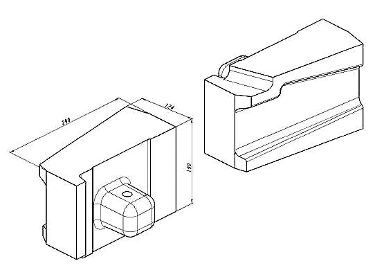 Abmessungen: L: 299 mm, W: 190 mm, T: 125 mm