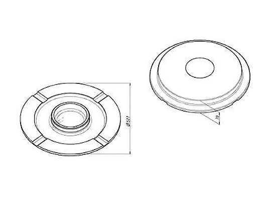 Abmessungen: L: 527 mm, W: 527 mm, T: 70 mm