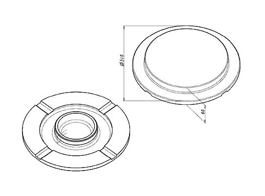 Abmessungen: L: 510 mm, W: 510 mm, T: 60 mm