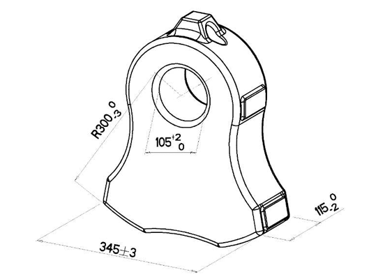 Abmessungen: L: 300 mm, W: 345 mm, T: 115 mm, B: 105 mm