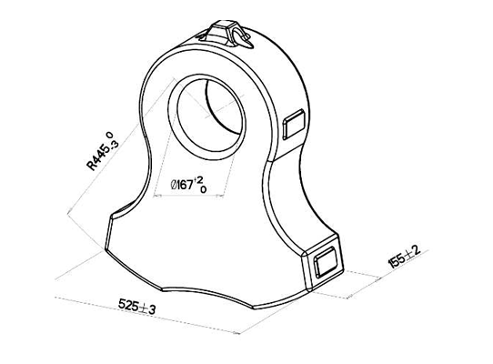 Abmessungen: L: 445 mm, W: 525 mm, T: 155 mm, B: 167 mm