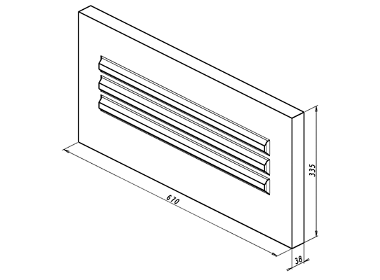 Abmessungen: L: 670 mm, W: 38 mm, T: 335 mm