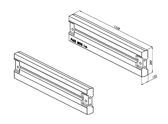 Abmessungen: L: 1338 mm, W: 340 mm, T: 120 mm
