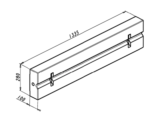 Abmessungen: L: 1335 mm, W: 280 mm, T: 100 mm